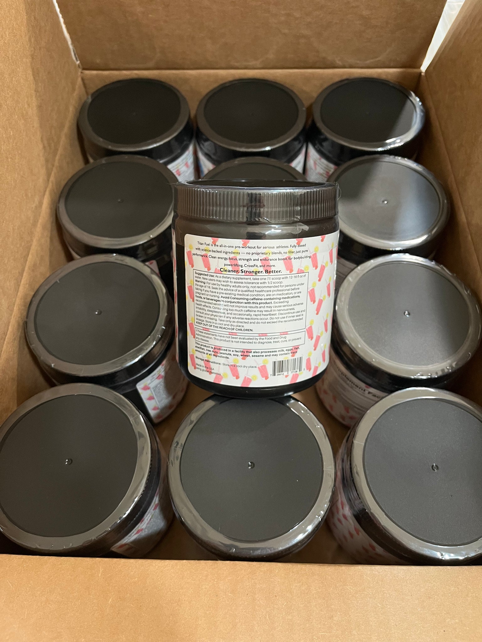 - 12 individual containers of 20 serving Titan Fuel